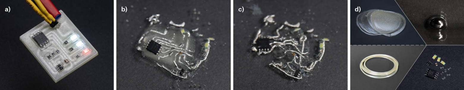 DissolvPCB 利用液态金属导体实现完全可回收的3D打印电路板