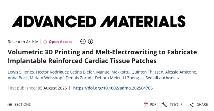 2025年8月8日,苏黎世联邦理工学院(ETH Zurich)与苏黎世大学医院组成的跨学科研究团队,成功开发并动物实验验证了一种新型3D打印强化心脏补片(RCPatch),为心脏缺损修复和心肌组织再生带来新的进展。