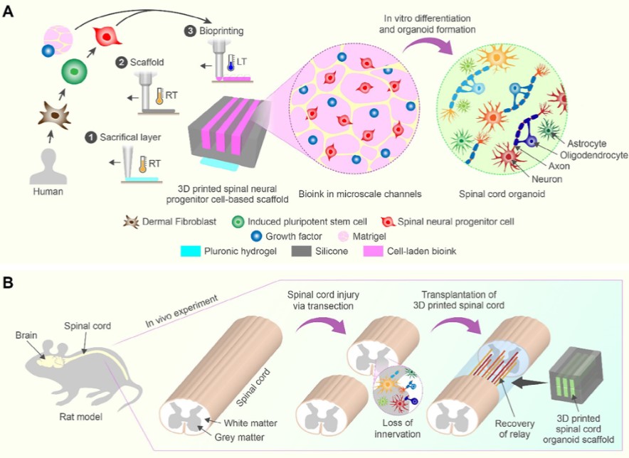 2025年8月27日,明尼苏达大学(UMN)的研究人员开发了一种可用于移植的 3D 打印类器官支架,使用具有临床应用价值的人类诱导多能干细胞衍生的区域特异性 sNPC。sNPC的移植已显示出有望通过与宿主神经回路建立连接,实现脊髓损伤 (SCI) 后的功能恢复。