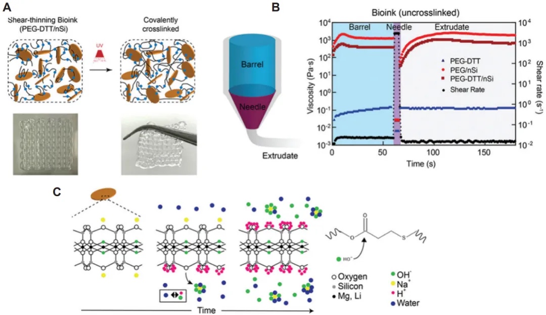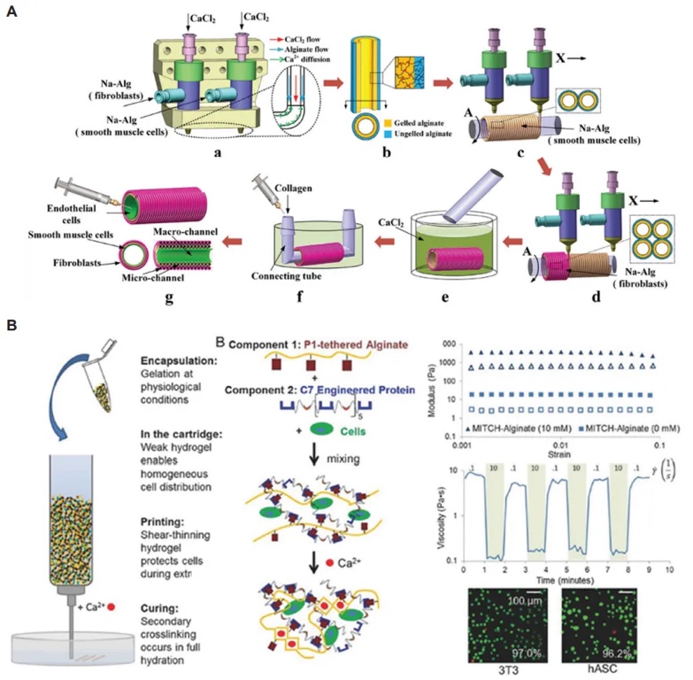 水凝胶特性:生物墨水需具备剪切稀化、屈服应力和适当的粘度,以适应打印过程并保持结构完整性。细胞的存在会影响水凝胶的流变性能和成形能力。