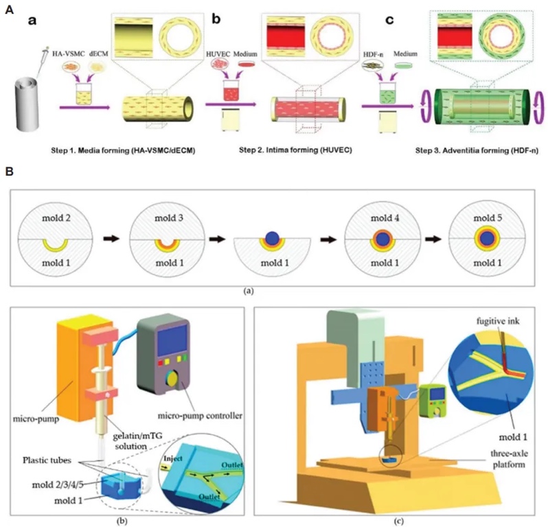 光固化成型:高分辨率,但对血管直径有限制。