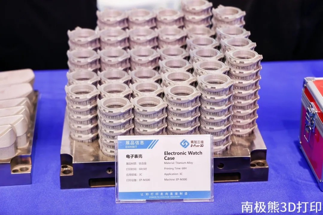 △金属3D打印手表表壳,一盘可以打印几十个甚至几百个,生产效率其实非常高。图片来自南极熊在展会上拍摄的样件,并非本次苹果Apple Watch Ultra 3表壳