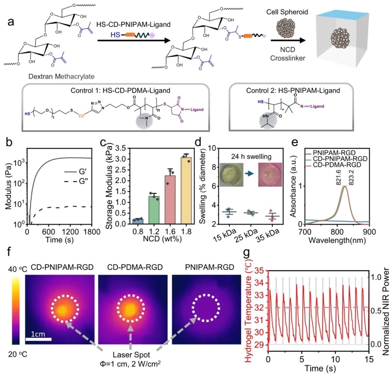 Pa范围内调节,且CD基团赋予水凝胶良好的光热效应,近红外光照射可使其温度快速变化,触发PNIPAM构象转变。
