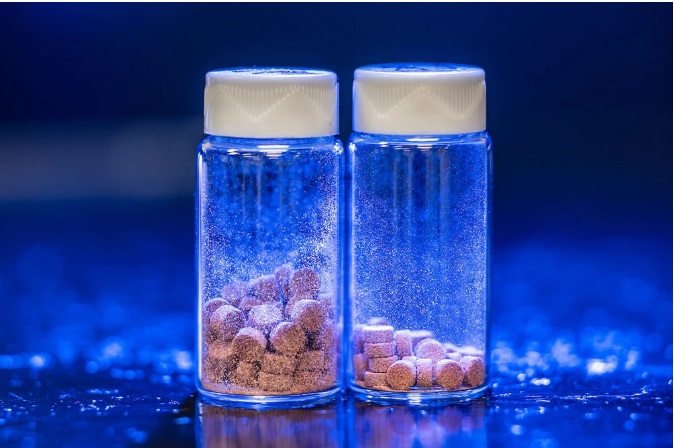 △MansoorKhan 博士展示新近 3D 打印的药丸。图片来自德克萨斯A&M 大学。