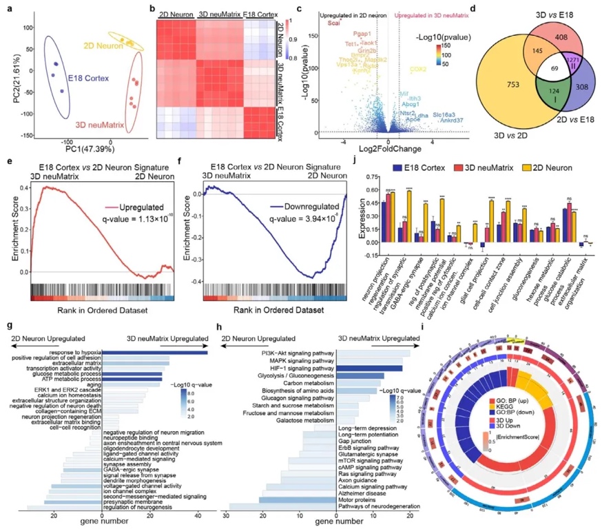 neuMatrix、2D培养神经元和E18大鼠皮层的基因表达谱。结果显示3D