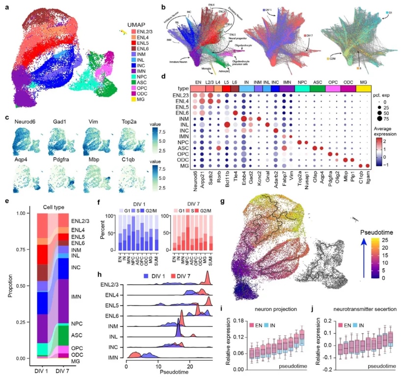 neuMatrix重现了大脑皮层的多种细胞类型,包括兴奋性神经元、抑制性神经元、星形胶质细胞等,并且随着培养时间的延长,细胞逐渐分化成熟,神经功能相关的基因表达增加。