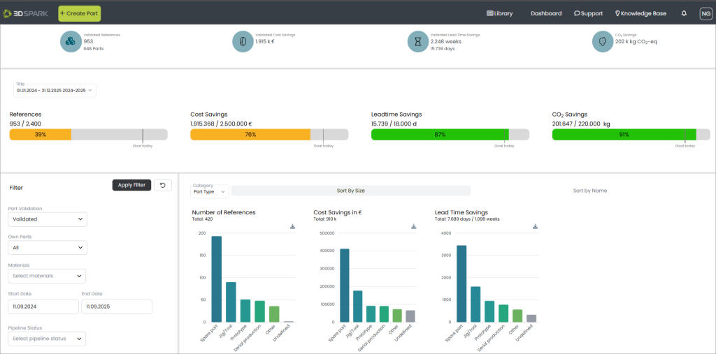 Spark表示,通过使用自动化制造可行性与技术分析平台,当团队上传CAD文件、PDF或元数据时,系统会同时评估可制造性、成本、交付周期和二氧化碳排放量。排放量将按材料、构建过程和后处理步骤进行细分。与传统工具不同,计算过程自动化且实时交付,精度可达±10%。