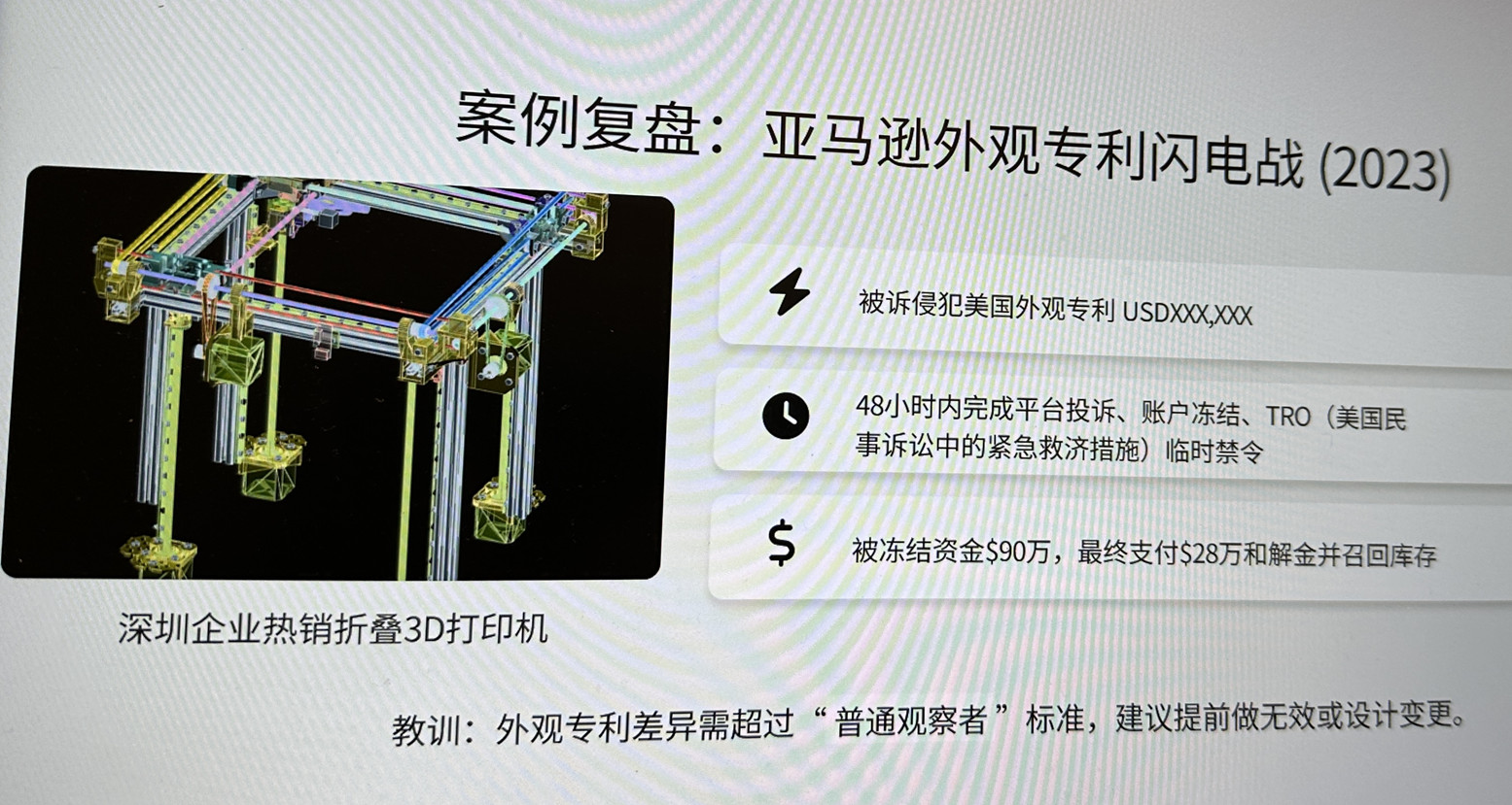 △深圳某企业的3D打印机,因为外观专利侵权而支付28万美元和解金并召回库存