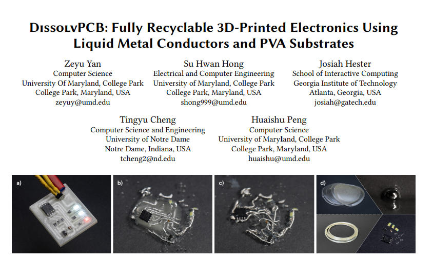 DissolvPCB技术还可以降低可持续印刷电路板生产的成本门槛。马里兰大学高级计算机研究所 (UMIACS) Huaishu