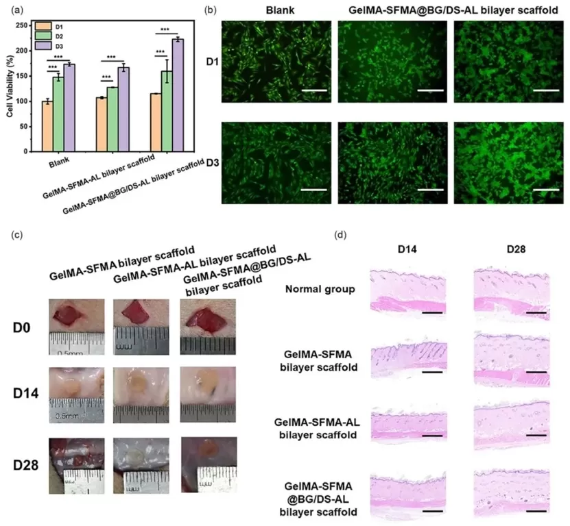 AL作为顶层,载生物活性玻璃(BG)的作为底层构建双层支架。