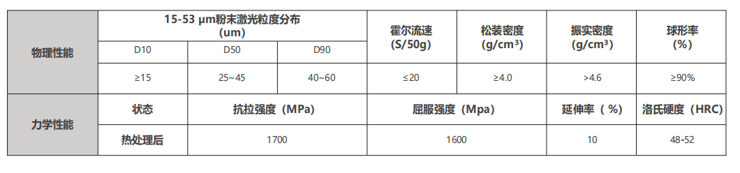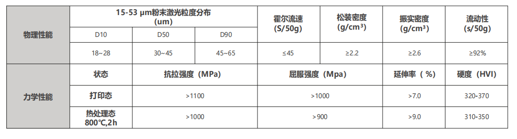 具有较高的强度和硬度,导电性、导热性以及耐磨性。粉末铺粉效果好,打印成型质量好。
