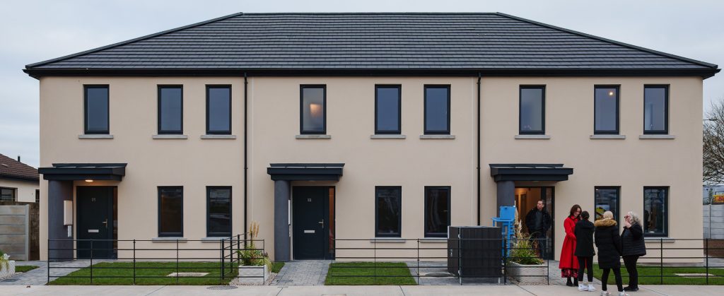 △爱尔兰首个符合 ISO 52939:2023 的社会住房项目比传统方法完工速度快 35%。照片来自 COBOD International。