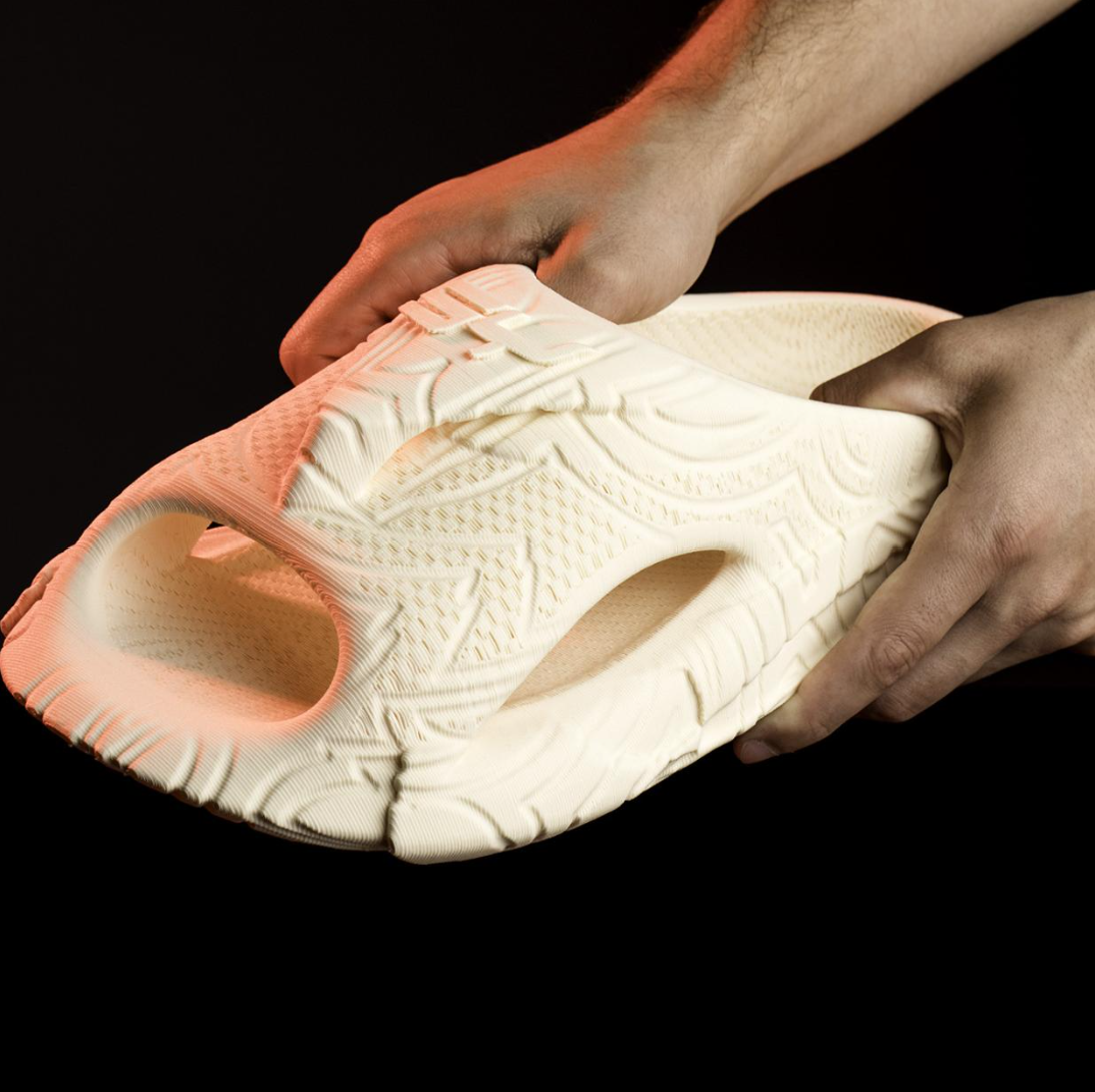打印的公司Zellerfeld合作,制造这款拖鞋。Zellerfeld的设备用多层材料制作出完全成型的鞋子,省去了大部分组装步骤,交付了无缝产品。