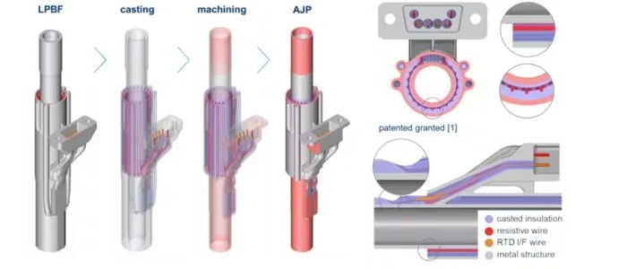 尽管如此,3D打印过程也面临多项技术难题,例如需要保持长电线与管结构之间的电绝缘性。为此,开发了一种牺牲桥设计,它既保证了电绝缘,又可以在固化后轻松移除。激光粉末床熔合技术的精确度要求极高,因为它必须精确控制结构与导线之间的间隙大小。间隙过小会导致材料过度熔合,而间隙过大则会影响热量从导线向管内传递。目前,这种设计和制造工艺已经获得了专利保护。