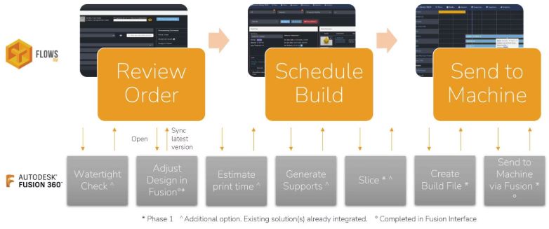 此次集成允许访问Autodesk Fusion API的Authentise Flows用户能够直接从Flows界面检查设计质量、生成支撑结构、切片、嵌套、创建特定于机器的打印文件,并对实时Fusion数据进行操作。此外,其他操作如调整设计或直接将零件发送到机器,现在也可以通过Fusion界面完成,界面可以通过Authentise Flows直接访问,确保设计始终处于最新的版本控制之下。