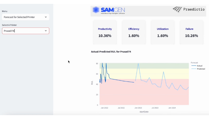 PRAEDICTIO是一款基于云的软件,它使用先进的算法持续监控和评估关键部件(例如加热床、风扇和传感器)的磨损情况。在评估了各种方法(包括优化算法和预测分析)后,SAMGEN认为他们的