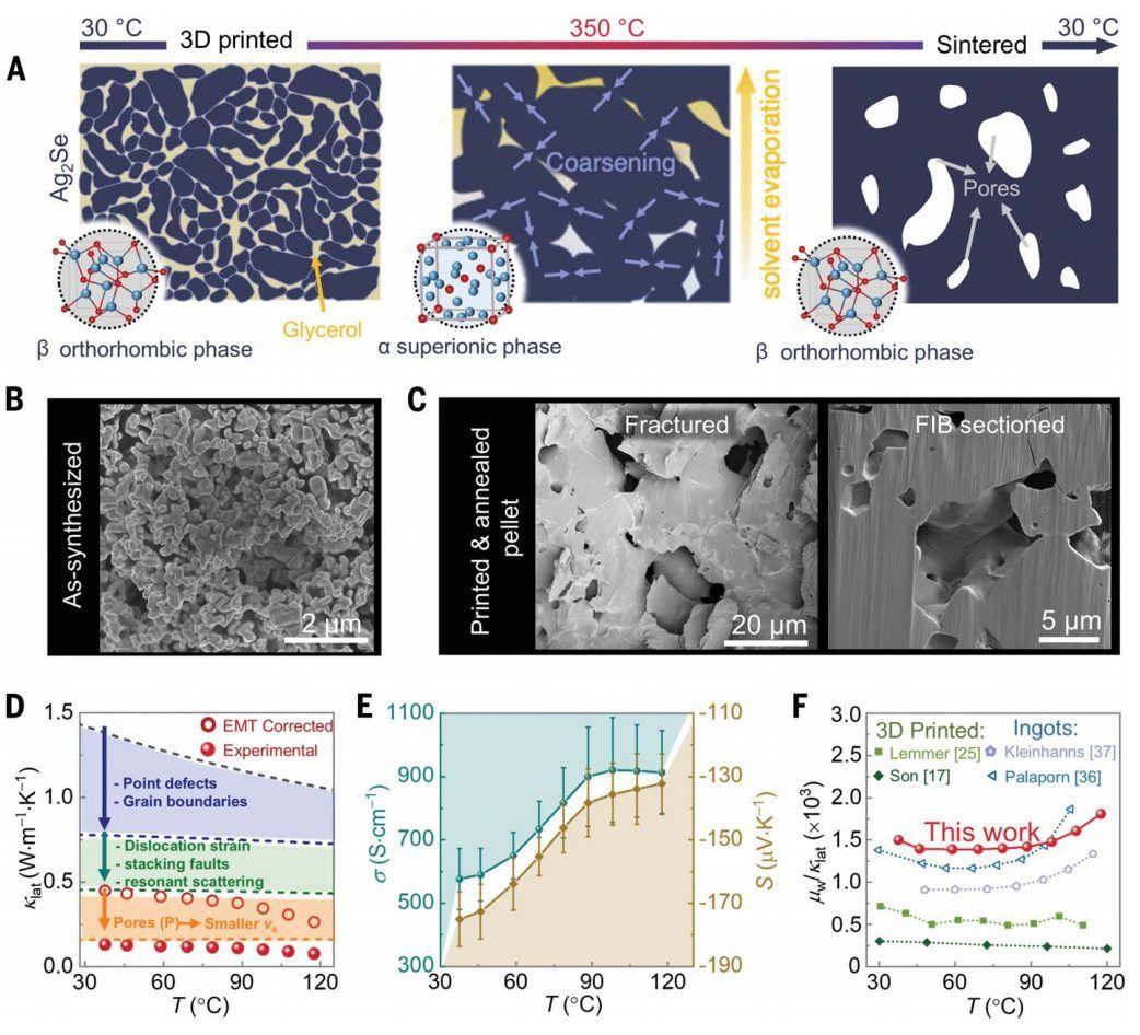 3D 打印材料的热电性能,同时也为多孔材料的传输特性提供了新的见解。Ibáñez 说:“我们采用了基于挤压的 3D