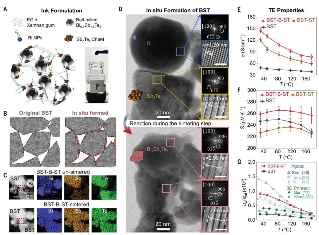 △通过形成颗粒间的界面键合提升BST-B-ST的热电性能。