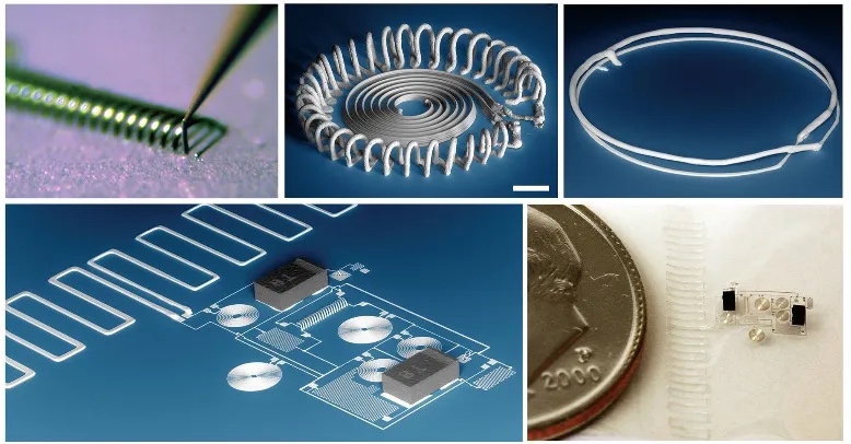 可直接打印加工电容、电感、电阻器件等,通过精细互联线路打印,实现有源无源集成。