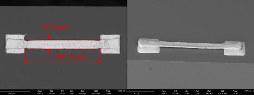 可打印MEMS悬臂导电结构,悬臂跨度>200 μm。