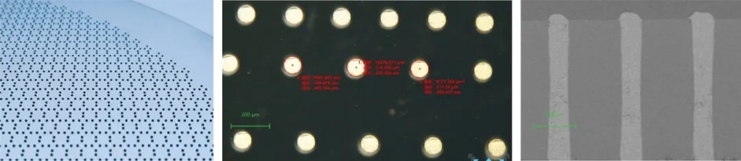 支持孔径≥30 μm,深宽比≤10的微孔致密金属化填充,可以兼容金属、聚合物等材料填充打印。
