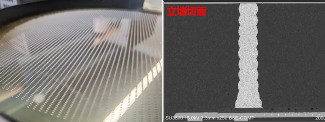 可实现高宽比≥5的Pillar结构打印,可应用于POP、AIP封装中的层间互联、金属屏蔽、金属探针等。