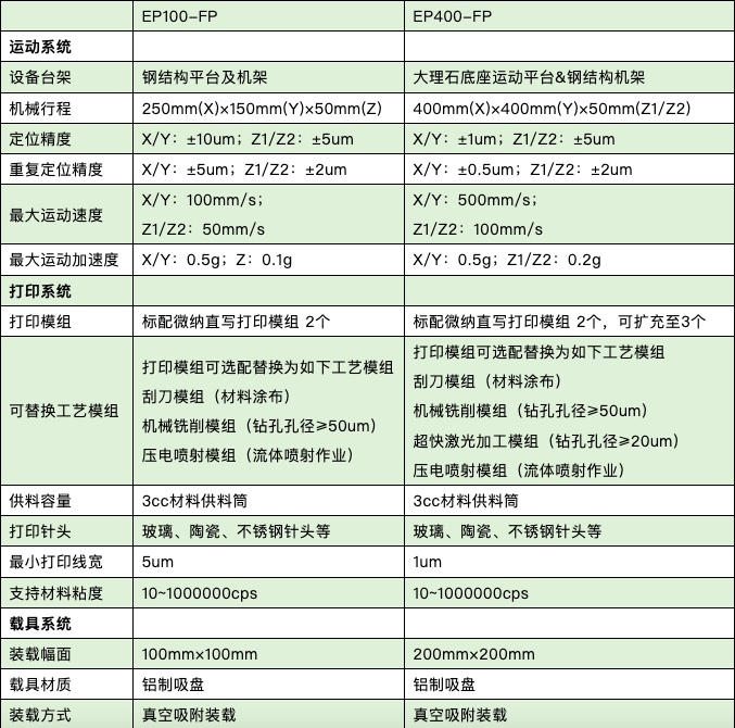 加工模组支持直写打印模组、精密铣削模组、压电喷射模组、刮刀涂布模组等多种加工手段组合,可根据需求选配不同加工模组安装于设备龙门。