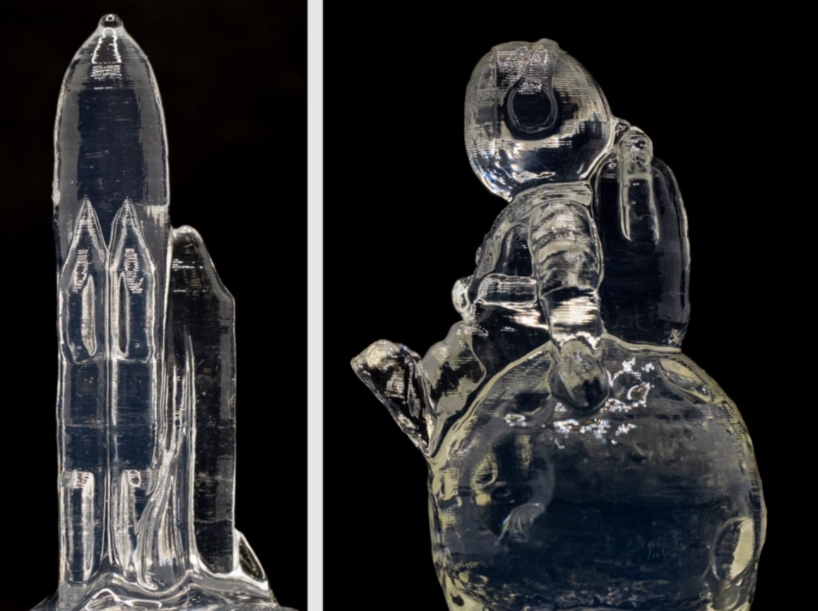 △3D 打印水凝胶航天飞机和月球上的宇航员。图片由 ESA/Johan Dubruel 提供。