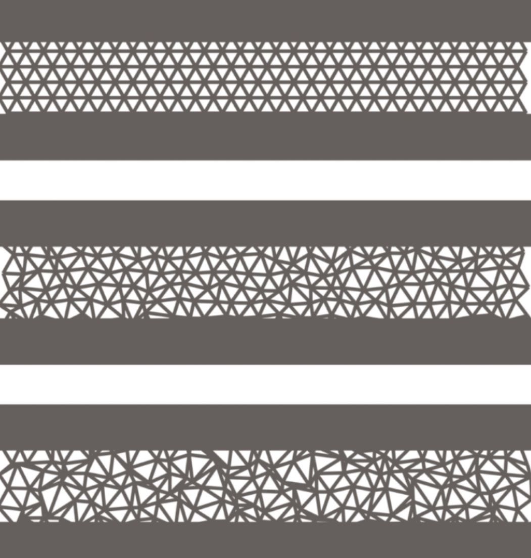 研究人员从自然界中的材料如骨头、珍珠层等获得灵感,这些天然材料表现出微小但看似随机的变化,从而增强了它们的性能。基于这一点,研究团队进行了各种三角晶格图案的计算模拟,比较了对称设计与节点位置变化的设计。