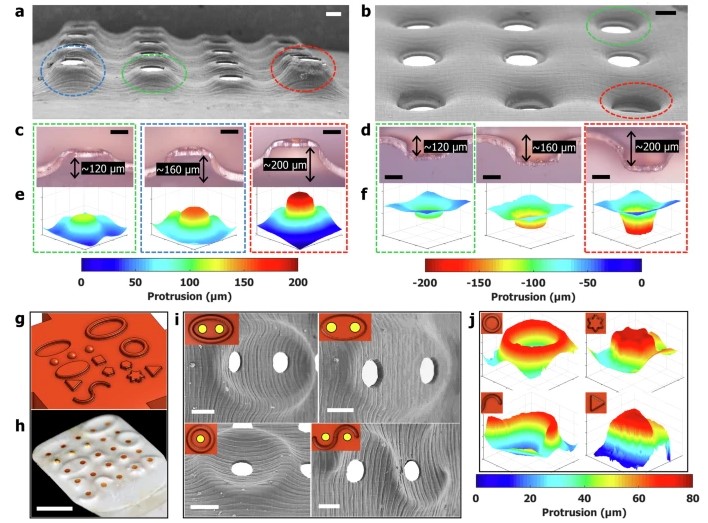 △通过一步 μETF 工艺创建的具有多种形状和高度的多功能 3D 结构。