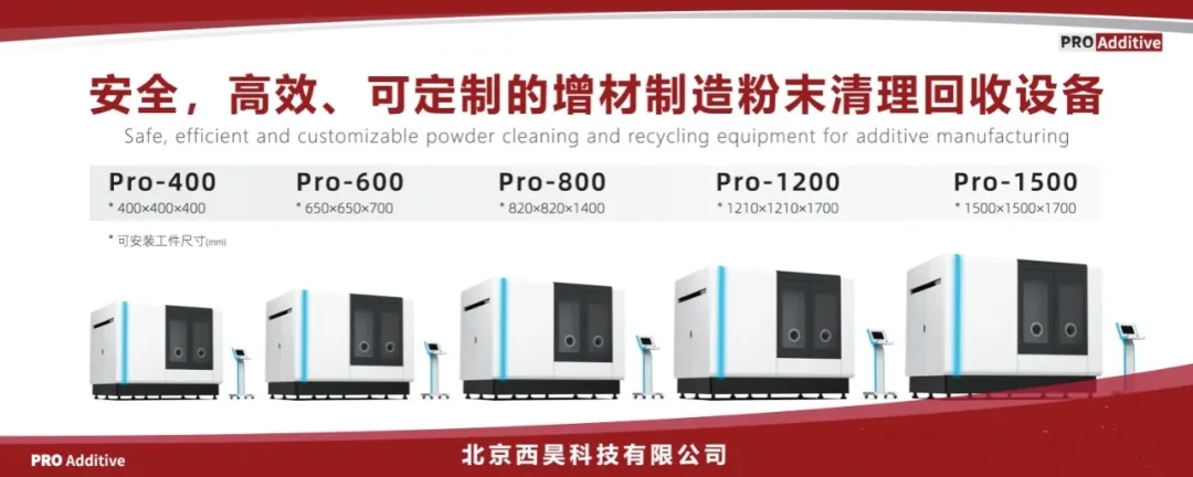 据悉,北京西昊科技有限公司早在2019年就一头扎进清粉设备的研发里。为了实现解放人力、保障操作员安全、保护工件安全、提升清粉效率、高效回收粉末这些目标,做了超多深入研究和试验,公司已经研发出来可定制的,尺寸从小到大的粉末清理全系列设备(从Pro-400到Pro-1500)。