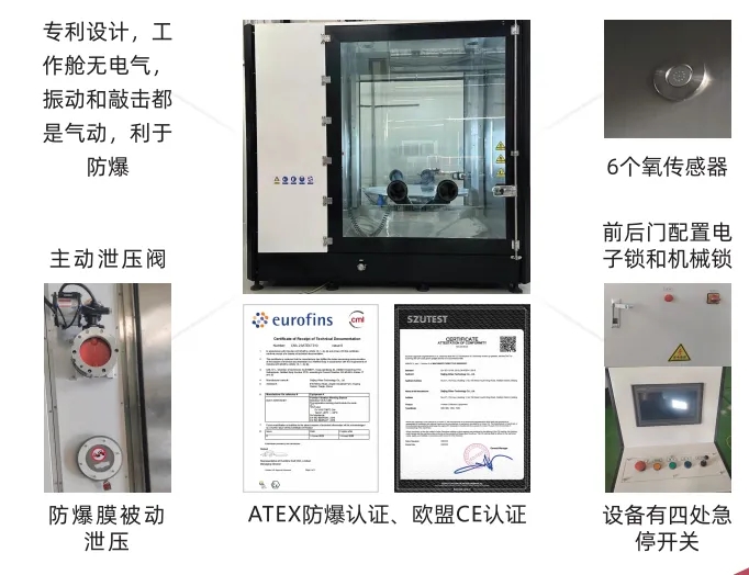 有全自动的惰性气体保护,能在线检测手套箱内的氧含量和压力,一有突发情况能迅速反应。采用工件密封手套箱设计,在密封环境下操作工件,安全防护拉满。充气密封结构保证手套箱的高防护和氧含量稳定。进口的耐磨抗老化防静电手套,符合防爆要求,进一步保障操作员安全。