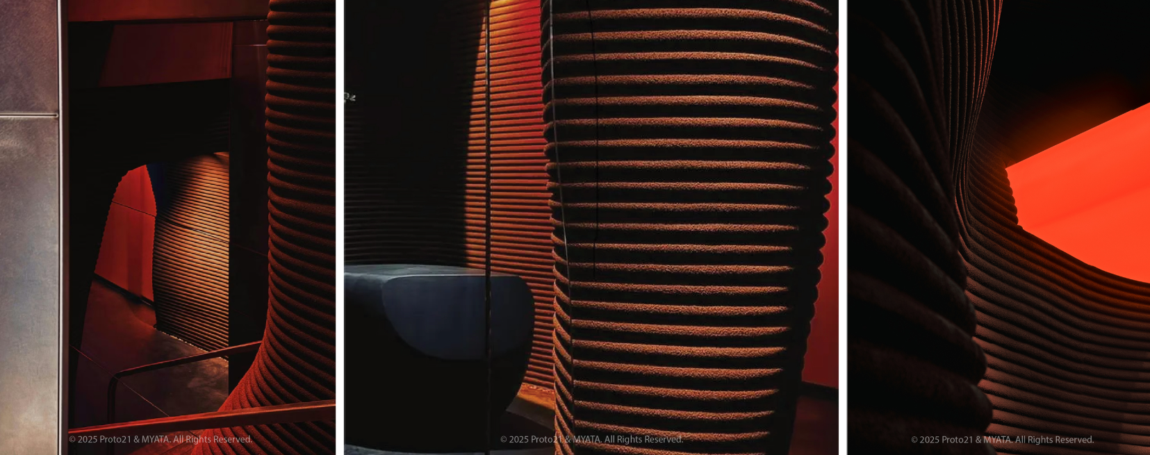 LLC合作,建造了23个巨大的3D打印组件,装饰了餐厅内部和外部,巧妙地融入了柜台、花盆及洞穴的设计之中。根据吉尼斯世界纪录官方记录,MYATA于2025年2月25日创下了惊人记录。整个项目占地面积达到1,190平方米,使用了超过10,500个3D打印部件,总重量达到了10.2吨。