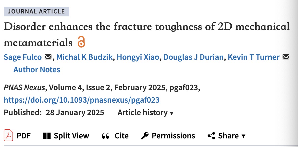 2025年3月8日,宾夕法尼亚大学工程学院的研究人员通过在3D打印机械超材料中引入受控无序几何设计,可以显著提升材料的抗裂性能。