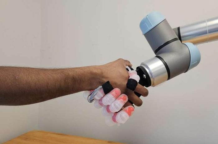 打印的内部骨架和状聚合物材料,手指配备三层触觉传感器,模拟人类皮肤的分层结构,使其不仅能感知触碰,还能识别物体形状和材质。