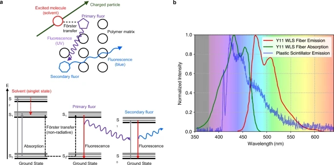 Kamioka)合作组织开始使用研究人员升级后的PS探测器收集新的中微子数据,其中包括SuperFGD,这是一个由200万个PS立方体组成的2吨重的探测器。当带电粒子穿过这些立方体时,它们会发光。由于中微子本身不带电荷,因此只有在它们与电子、质子、μ介子或π介子等其它带电粒子相互作用时,才能进行研究。每个立方体都嵌入了三根光纤,这些光纤将光信号引导至