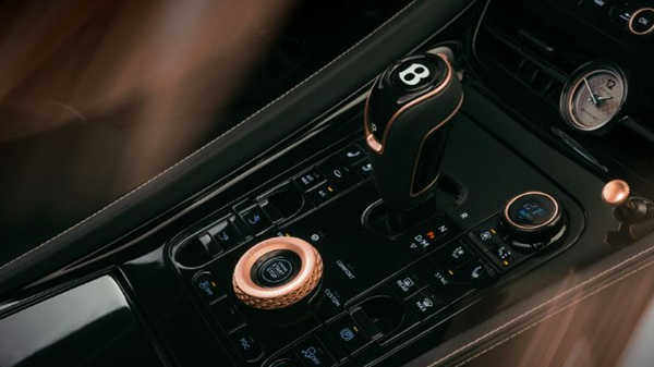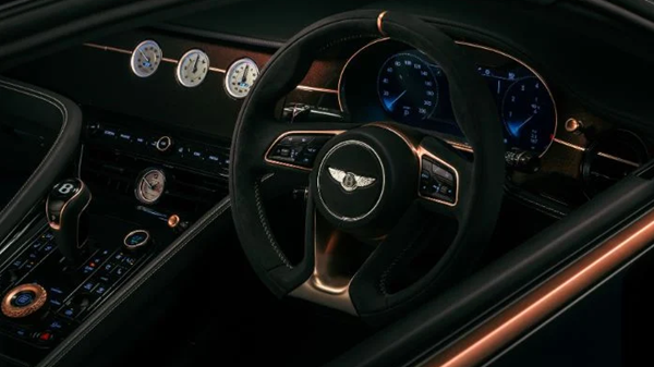 18K玫瑰金只是宾利汽车所采用的众多创新材料之一。该车还采用了受航空航天启发的钛金属和由咖啡烘焙副产品制成的耐用皮革状纺织品,为客户提供个性化和环保的选择。除了3D打印的玫瑰金部件外,该车还采用了独特的外部喷漆,并在多个元素上采用了缎面玫瑰金装饰:格栅、“无尽引擎盖线”装饰件、后视镜盖、车身底部套件和三色轮毂。