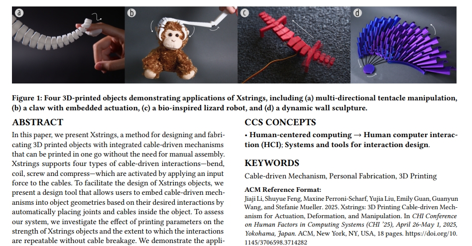 2025年3月25日,清华大学、浙江大学和麻省理工学院计算机科学与人工智能实验室(CSAIL)的研究人员开发出一种新型软件,可以3D打印出具有类似人类运动能力的物体。这项技术被称作“Xstrings”,它能够自动制造出可弯曲、盘绕、拧紧和压缩的电缆驱动组件。