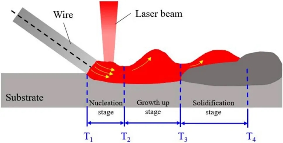 因此,实现均匀的焊丝沉积和稳定的熔池形态是满足成型零件形状控制和成型可控性的关键因素。尽管目前常规铣削与激光填丝增材制造工艺的结合应用越来越广泛,能够优化零件的表面成型质量,但在激光填丝增材制造过程中的熔滴下落、焊丝均匀凝固、熔池演变、冷却速率监测和路径规划等方面,仍需要进一步深入研究。大多数提高成型零件表面质量的方法都只是单一地改变工艺参数和作用方式。因此,有必要研究不同时刻的熔滴状态和熔池演变情况。根据温度场和应力场的变化规律,调整工艺参数和成型轨迹,精确控制零件的最终成型效果,进一步推动激光填丝增材制造工艺的高质量、稳定发展。