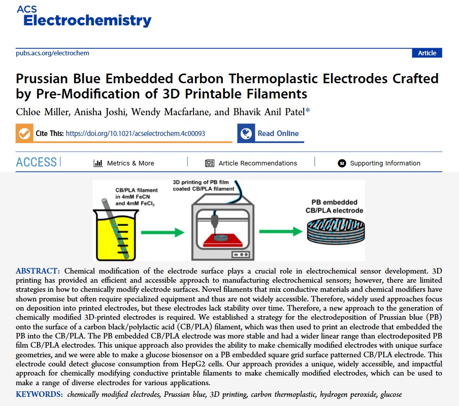 2025年3月27日,来自布莱顿大学的研究人员开发了一种 3D 打印葡萄糖生物传感器,可以监测 HepG2 细胞中的葡萄糖消耗。相关研究以题为“Prussian Blue Embedded CarbonThermoplastic