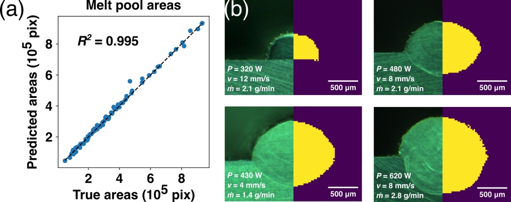 1.高精度预测:AIDED框架能够准确预测单道熔池的面积(R²得分0.995)、多道熔池的倾斜角度(R²得分0.969)以及多层熔池的截面几何形状(宽度和高度误差分别为1.75%和12.04%)。