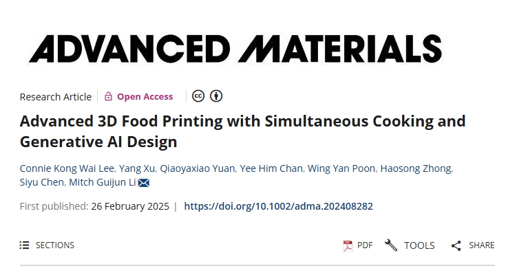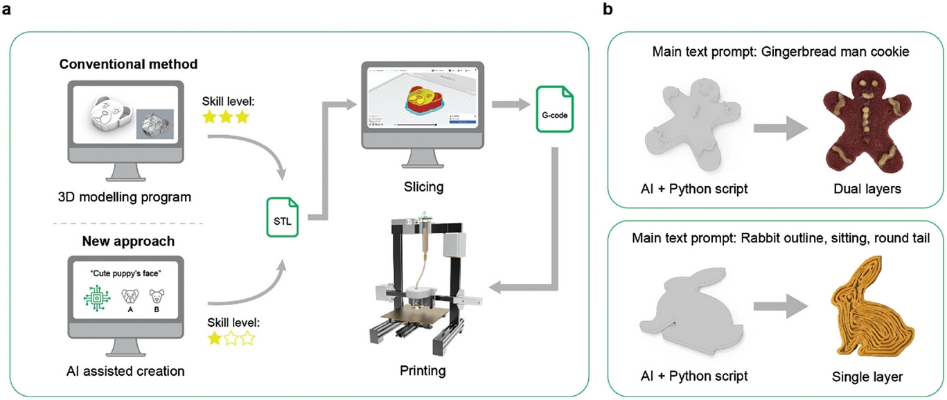 2025年4月2日,香港科技大学(HKUST)的研究人员开发了一种先进的人工智能辅助食品3D打印解决方案,将打印与红外烹饪相结合,为更安全、更高效、外观更美观的食品生产铺平了道路。