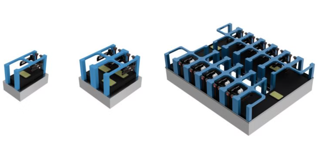 Matrix6D的核心在于“基于网格的XY可配置工具单元架构”,允许任意数量的工具站以矩阵形式排列,每个工具站都可以根据所需的构建体积和精度进行定制化配置。每个工具站都相当于一个迷你制造单元,支持多种材料沉积工艺,包括气溶胶喷射、喷墨打印、直写技术、点胶以及挤出等。此外,这些工具站还能集成非增材制造工艺,例如固化、后处理、拾取和放置机器人,以及用于校准和检测的视觉系统。移动构建平台通过磁悬浮技术在不同工具站之间自主穿梭,从而完成复杂的多步骤制造任务,完全摆脱了传统3D打印机的空间和功能限制。