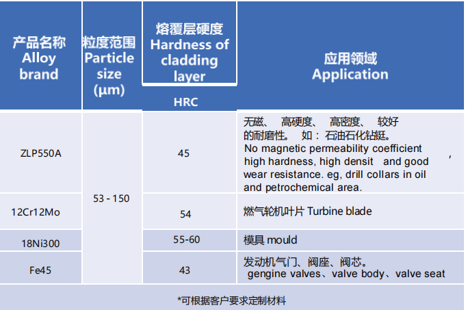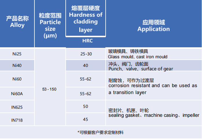 3、可根据客户要求筛分不同粒径,适用于3D打印、激光熔覆、等离子堆焊等工艺。