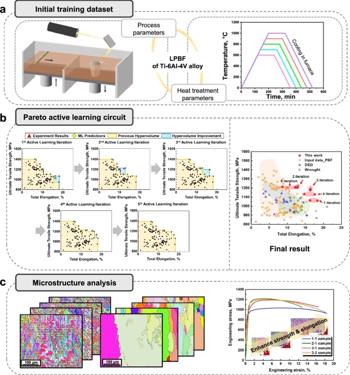 296 个候选参数构成的庞大参数空间,精准确定能够同时提高强度和延展性的最优参数。与先前研究中的 Ti-6Al-4V