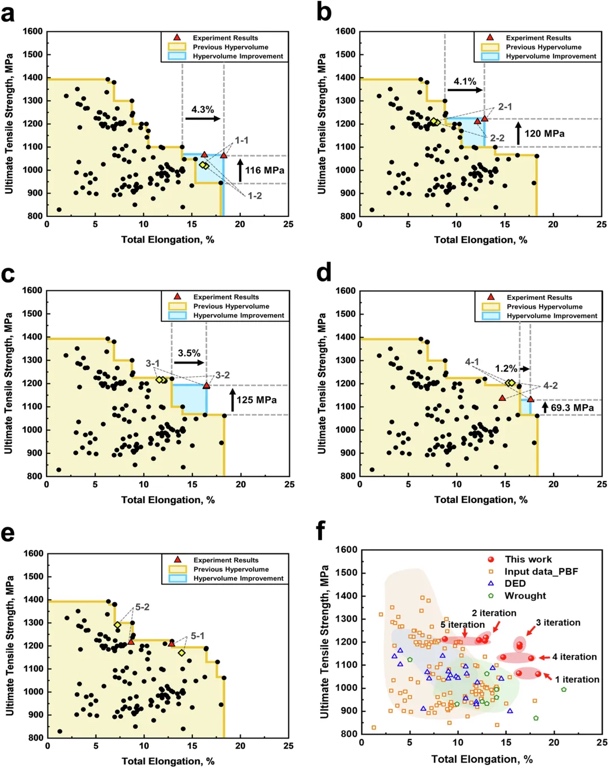 其中,EHVI 函数发挥了关键作用。它巧妙地在探索高不确定性区域与开发高预测性能区域之间寻找到了平衡,成功克服了长期以来困扰行业的强度 - 延展性权衡难题。