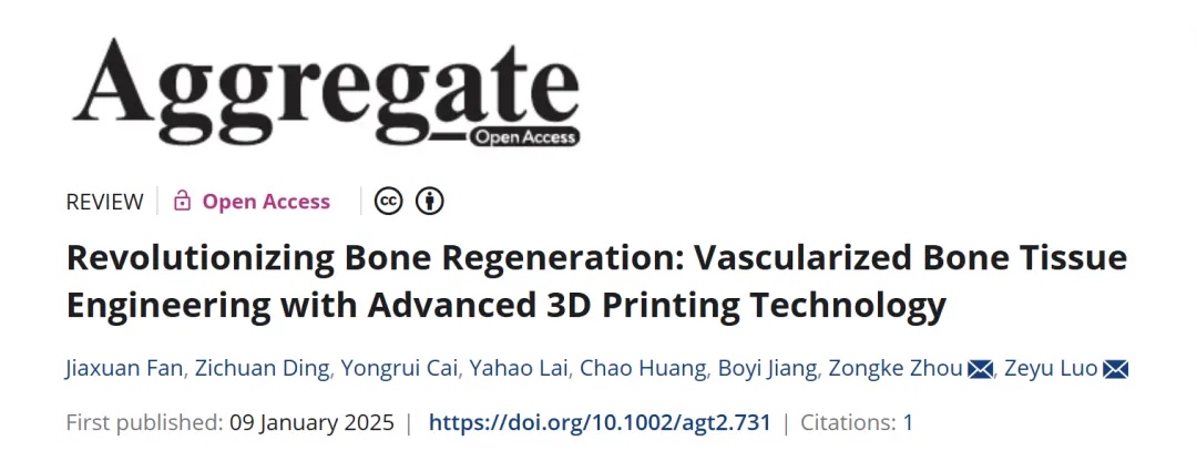 来自四川大学的罗泽宇和周宗科教授团队,对3D打印制备血管化骨修复支架的研究进展进行了综述。团队详细探讨了当前在打印技术、打印墨水、生物活性因子以及支架结构设计等方面的进展,并深入分析了其在多种骨缺损疾病治疗中的应用。在此基础上,团队提出3D打印的血管化骨修复支架虽前景广阔,但需克服现有挑战,未来应致力于优化打印技术、改进墨水性能、创新支架结构设计。相关工作以“Revolutionizing
