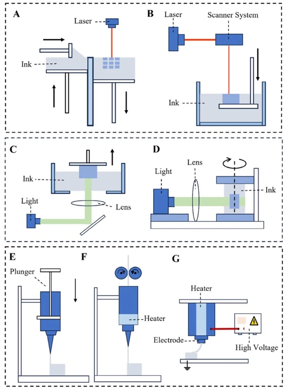3. 3D打印策略:介绍了多种3D打印技术的系统,如选择性激光烧结、立体光刻、数字光处理、体积打印、熔融沉积建模、挤出打印和熔丝电子书写等。这些技术原理不同,各有优缺点,在构建血管化骨修复支架时发挥着不同作用,为支架的制造提供了多样化的选择。