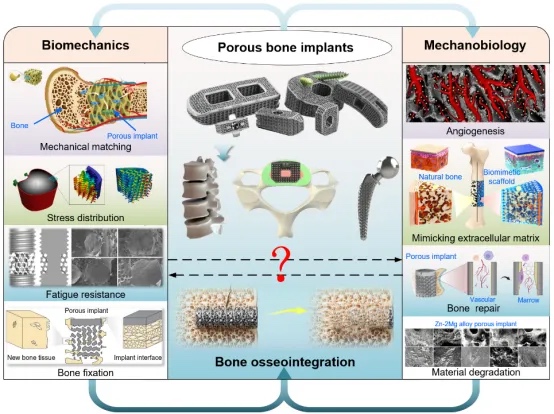 从细胞层面和组织层面出发,系统探讨了多孔结构在植入后调控血管生成、模仿细胞外基质(ECM)微环境、促进细胞粘附、迁移与分化等生物过程的机理。进一步指出了孔径、孔连通性与表面功能化等微结构特征在力学生物学信号传递过程中的关键作用。