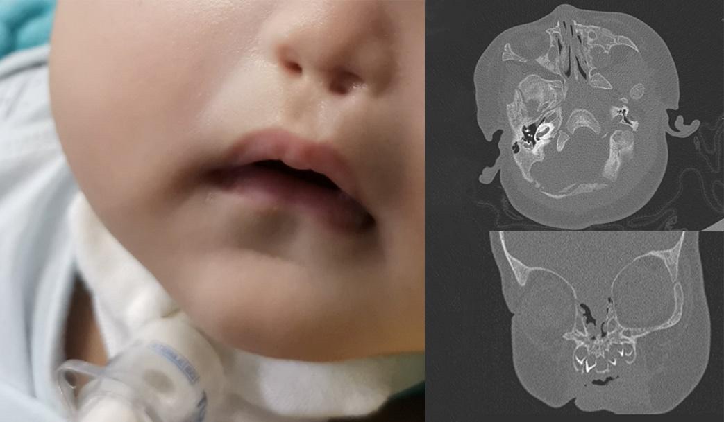 复旦大学附属中山医院是中国首个综合类国家级医学中心。作为中山医院耳鼻喉科团队目前的成员,于浩然博士曾经接诊过一例特殊的患儿。该患儿出生时即表现为双侧前鼻孔完全闭锁,仅存微小凹坑。这种情况极为罕见,全球尚未出现成功救治的先例。该病救治的难点在于,患儿前鼻孔外观及鼻翼软骨均未发育,即使手术开通,术腔因缺乏支撑,也会迅速愈合。如果借鉴传统的治疗后鼻孔闭锁的方法,将气管插管或引流管插入鼻腔作为固定支撑,势必引起患儿强烈的异物感,鼻腔功能无法正常发挥,生活质量差,护理难度大,而且容易引发感染和局部坏死等问题。